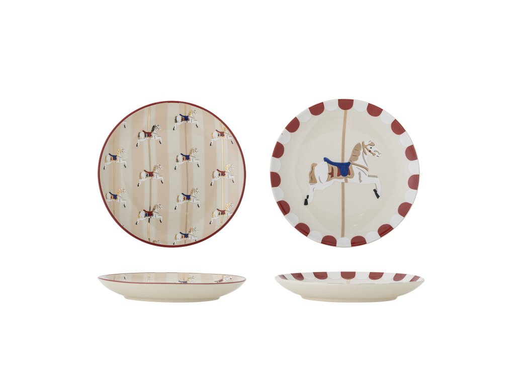 Bloomingville Dezertní talířky Merry-go-round 2 ks Bloomingville Merry-go-round Plate, Red, Stoneware