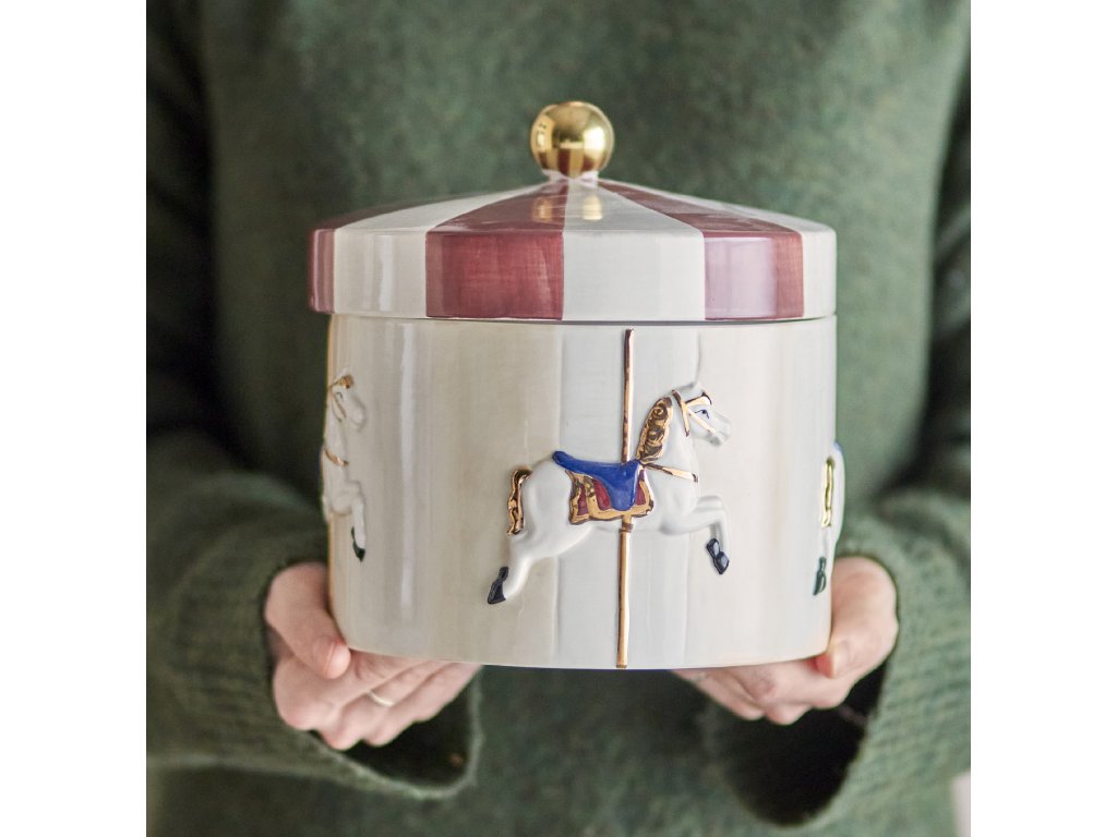 Bloomingville Dóza na sušenky Merry-go-round Bloomingville Merry-go-round Jar w/Lid, Red, Stoneware