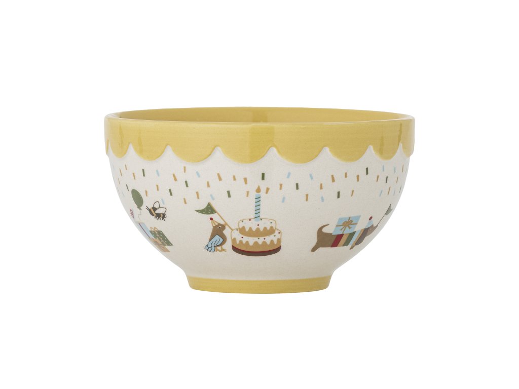 Bloomingville Kameninová miska s narozeninovým motivem Yellow Bloomingville Celebrate Bowl, Yellow, Stoneware