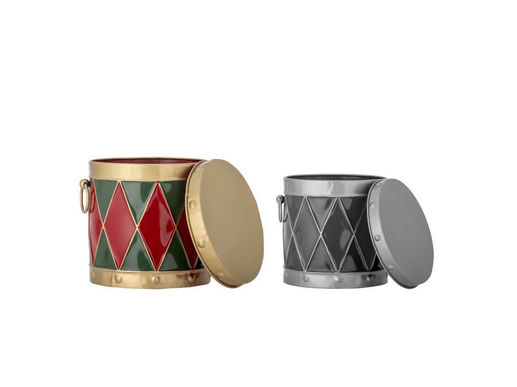 Bloomingville Plechovka Bubínek - velký Bloomingville Yuri Box w/Lid, Red, Metal - Large