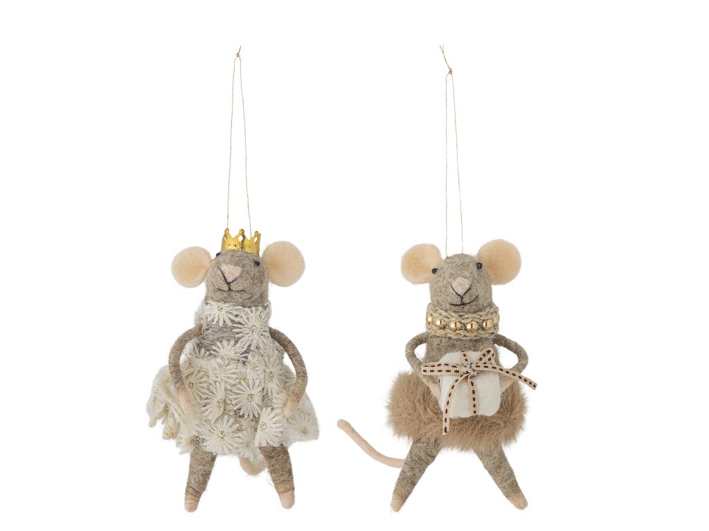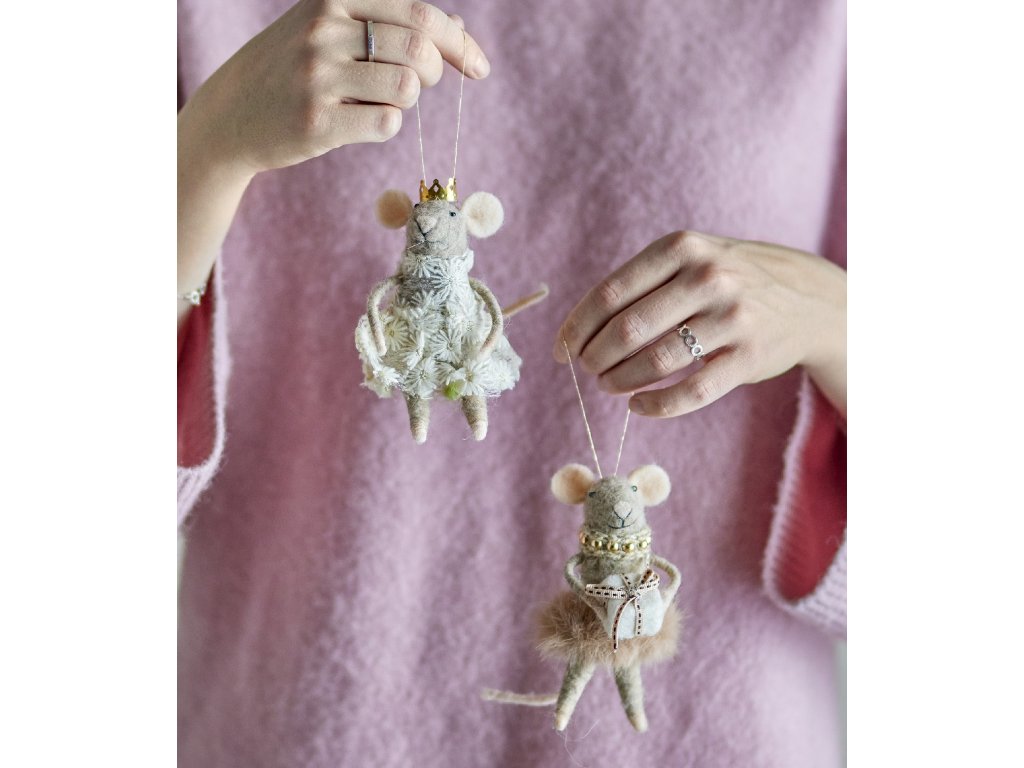 Plstěné ozdoby od Bloomingville jsou sofistikovaným a okouzlujícím doplňkem vašeho vánočního stromku. Sladké vánoční ozdoby se dodávají v sadě 2 malých myšek vyrobených z plsti, zdobených těmi nejjemnějšími detaily. Malé myšky rozdávají radost, ať už jsou umístěny na větvích, klikách dveří nebo jako extra rozmarný dotek na vánočních dárcích. Hravost, která z nich čiší, navíc obzvláště ocení malé děti, a jejich nerozbitnost zase rodiče. Můžete tak s klidným srdcem ozdobit stromeček i v dětském pokojíčku! A každý rok můžete přidat do sbírky novou myš a sledovat, jak se vaše rodinka vánočních ozdob rozrůstá.