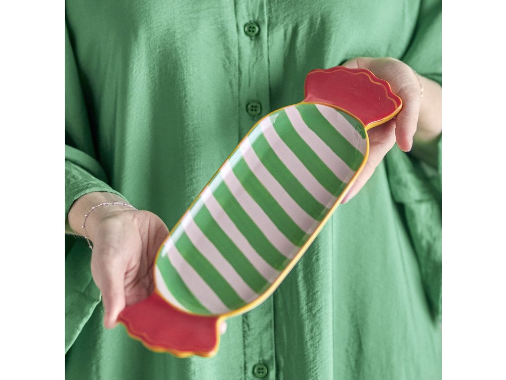 Servírovací talíř Caramella od Bloomingville je vyroben z kameniny a zdoben ručně malovaným pestrobarevným vzorem. Tento jedinečný talíř dodává prostírání hravý prvek a je ideální pro servírování malých pochoutek jako je cukroví či jednohubky. Ručně malované detaily činí každý talíř zcela jedinečným a dodávají mu okouzlující vzhled vhodný nejen na pestrobarevné Vánoce ale i na drobné příležitosti přes rok, jako jsou třeba narozeniny. Design tohoto talířku ocení nejen děti ale i dospělí.