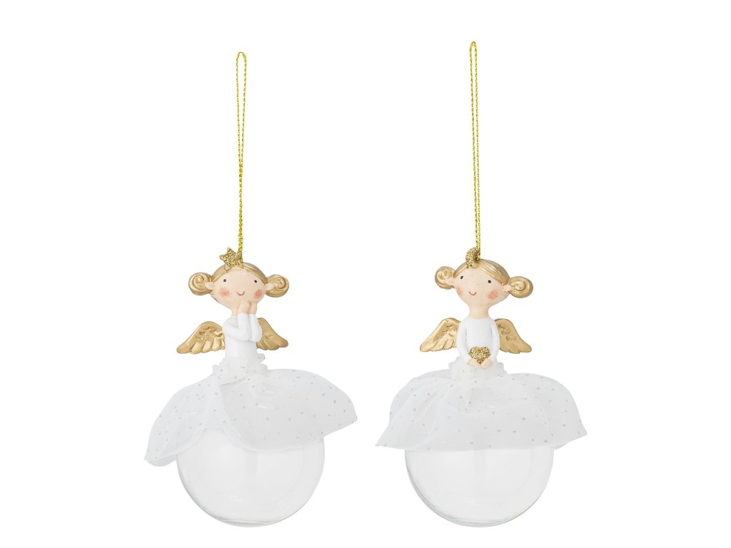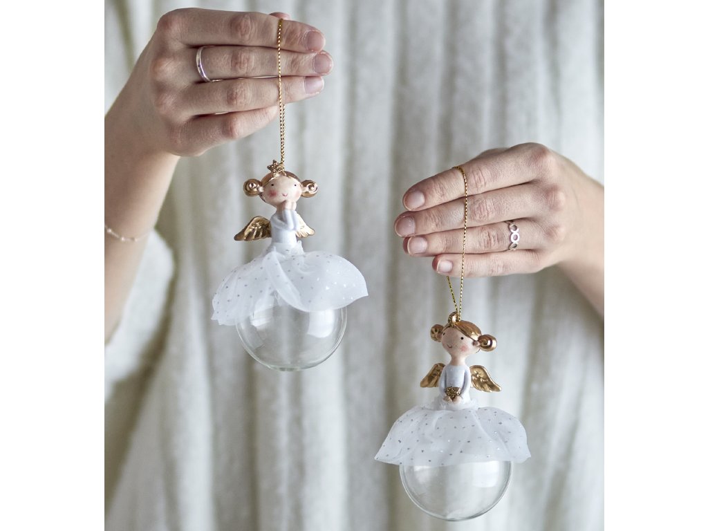 Sada vánočních ozdob Griselda od Bloomingville je okouzlující sada s něžnými andílky. Ozdoby jsou vyrobeny ze skla, zatímco detailní figurky andělů jsou z polyresinu. S tylovými sukněmi a zlatými křídly elegantně visí na jemné zlaté šňůrce a dodávají vánočnímu stromečku nebo jiným dekoracím sladký a slavnostní nádech.