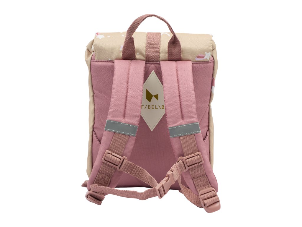Malý batůžek Fabelab je skvělý na malé výlety i do školky. Má přední kapsu na zip na menší předměty a snadno se zapíná pomocí stahovací šňůrky a přední klopy na přezku. Pro pohodlí a funkčnost jsou ramenní popruhy polstrované a pro optimální padnutí je k dispozici křížová přezka na hrudi. Reflexní detaily jsou umístěny vpředu i vzadu pro lepší viditelnost v provozu. Uvnitř batohu jsou dvě samostatné kapsy praktické na menší předměty a stylový odznak ve tvaru diamantu, na který si můžete napsat své jméno, abyste si v mateřské školce nezaměňovali batohy.