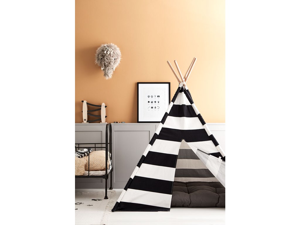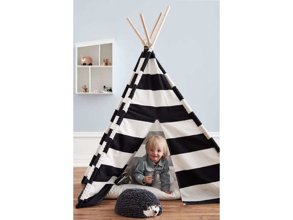 Jednoduchý stan v podobě teepee snadno složíte i rozložíte. V dětském pokoji slouží na hraní i jako krásná dekorace.