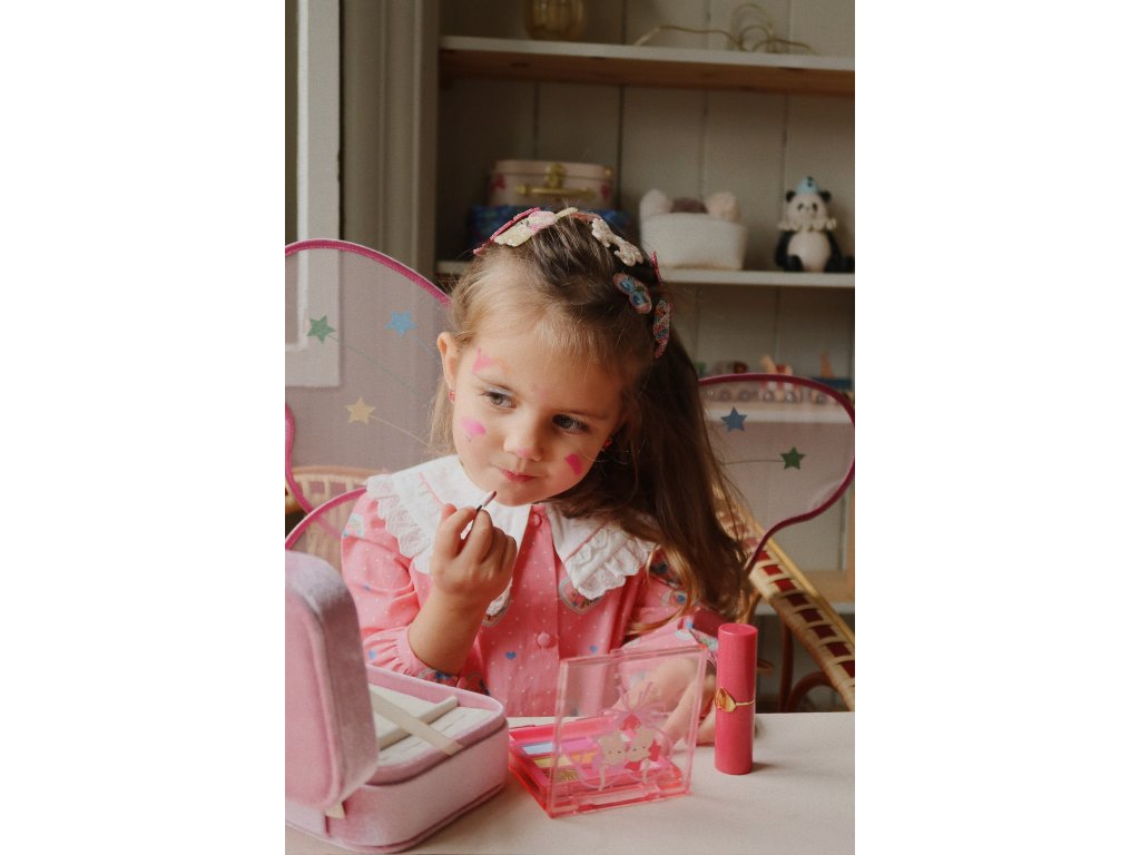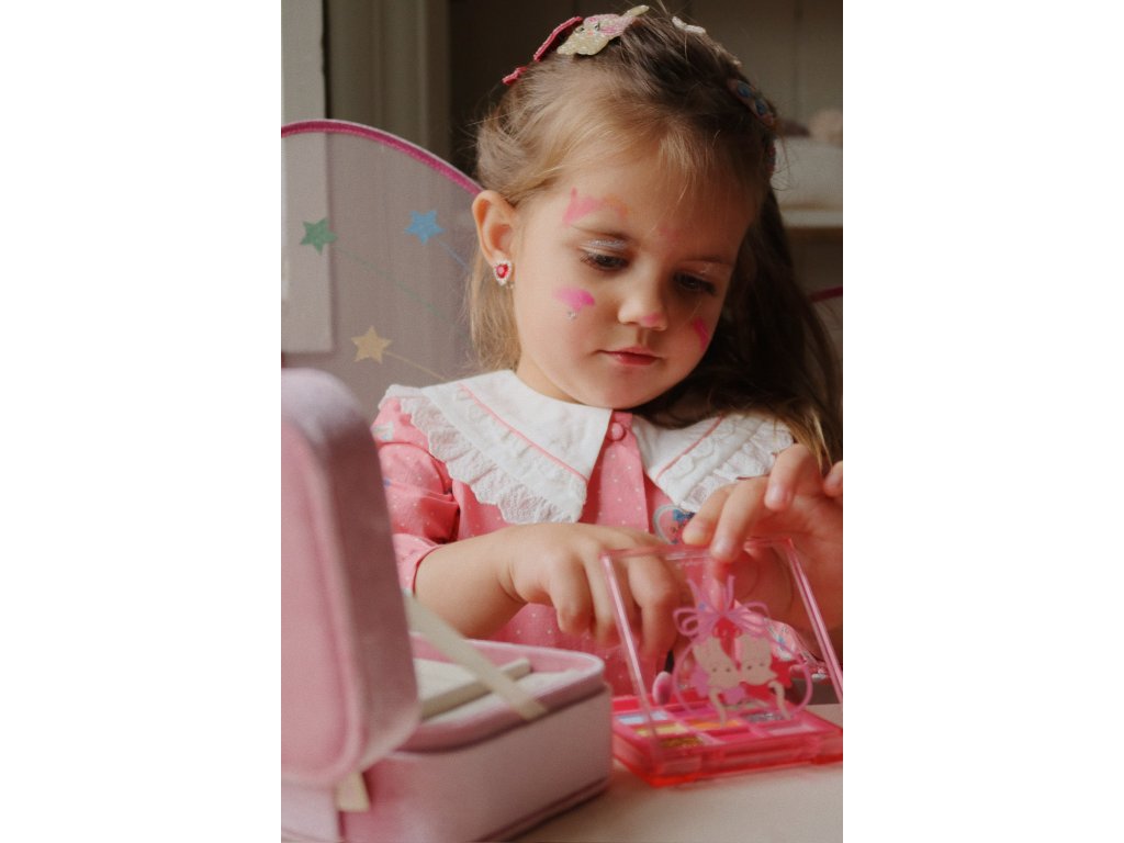Naše paleta očních stínů obsahuje devět krásných barev, které dětem umožňují prozkoumávat a využívat svou kreativitu při líčení. Paleta je speciálně vyvinuta pro použití na citlivé dětské pokožce, takže je bezpečná. Obsahuje jak plné, tak třpytivé barvy, které se snadno nanášejí a odstraňují.