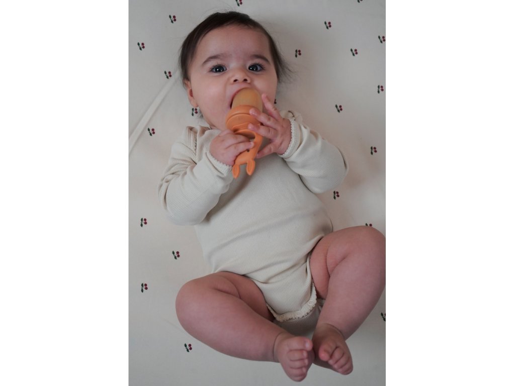 Silikonový perforovaný dudlík, který lze po odšroubování naplnit jakýmkoliv šťavnatým ovocem či zeleninou a dopřát tak čerstvé vitamíny i těm nejmenším. Stimuluje bolavé dásně a brání nebezpečnému zaskočení. Vrchní část dudlíku je neklouzavá a dostatečně pohodlná pro uchopení malými ručičkami. Dudlíky mají uzávěry, které nejen že zajistí obsah hygienicky čistý, ale hlavně udrží obsah na svém místě a zabrání nepříjemnému znečištění při cestování.