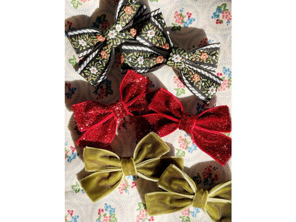Něžné sponky s mašličkami, sametová, třpytivá a s folklórní výšivkou. Všechny překrásné a slavnostní, ideální nejen na Vánoce.
