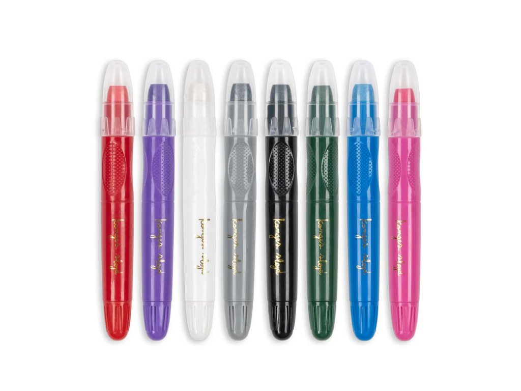 Užijte si spoustu zábavy s voskovkami na obličej Konges Slojd. Barvy jsou na vodní bázi a lze je použít na obličej i na tělo, jsou bez parfému i bez lepku, vhodné pro vegany, v osmi krásných a živých barvách. Všechny barvy lze snadno smýt jemným mýdlem a vlažnou vodou.