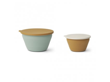 Lehké svačinkový krabičky z nerezové oceli se silikonovým víčkem. Nerezová ocel je ideální pro uchování potravin, protože neabsorbuje barvy ani vůni uloženého jídla. Kryté jsou silikonovým víčkem s vyraženým obrázkem některého ze zvířátek Liewood. Svačinové boxy jsou vhodné i do myčky.