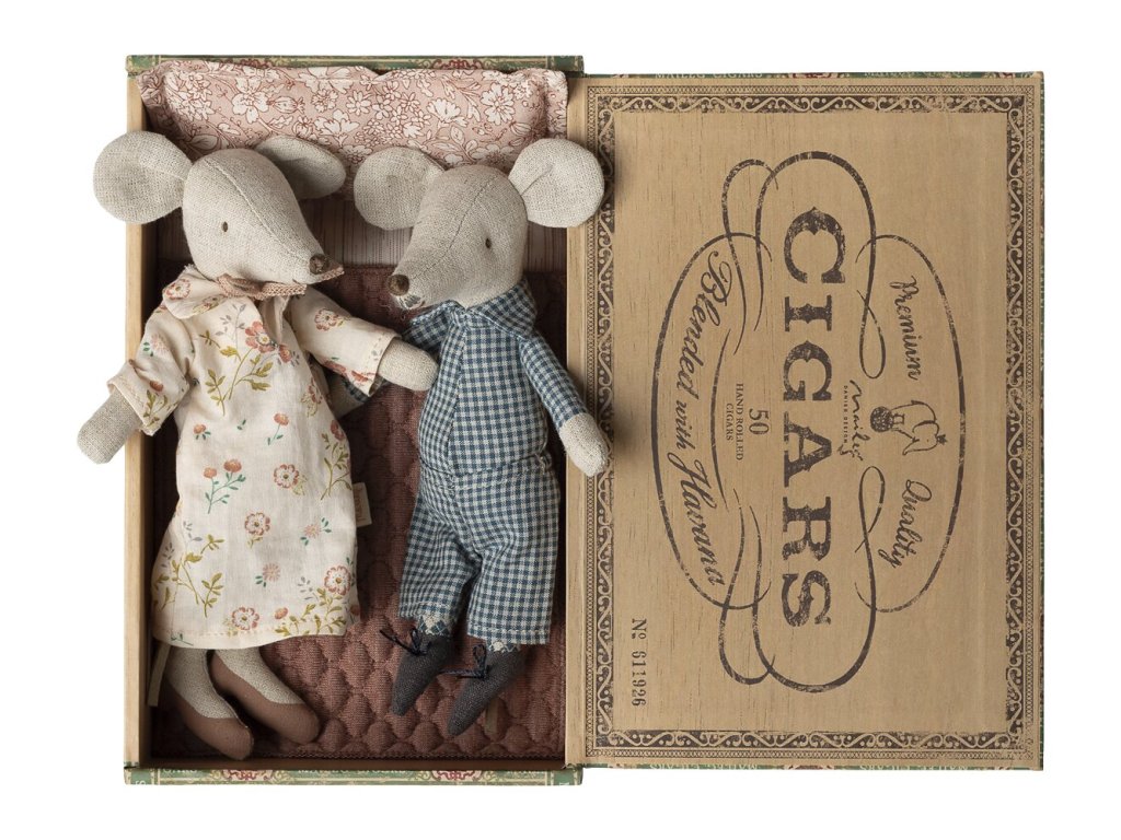 Maileg Babička a děda v krabičce od doutníků Maileg Grandm and Grandpa mice in cigarbox