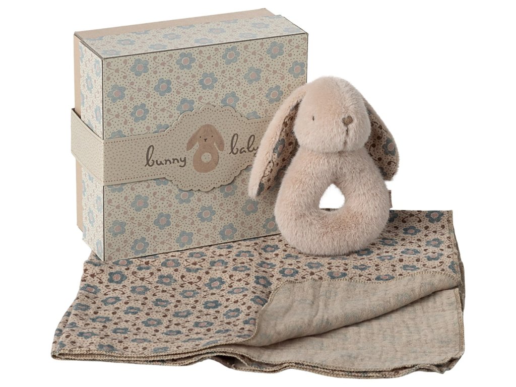 Maileg Dárkový balíček pro miminko Králíček Powder Maileg Bunny Rattle Set - Powder