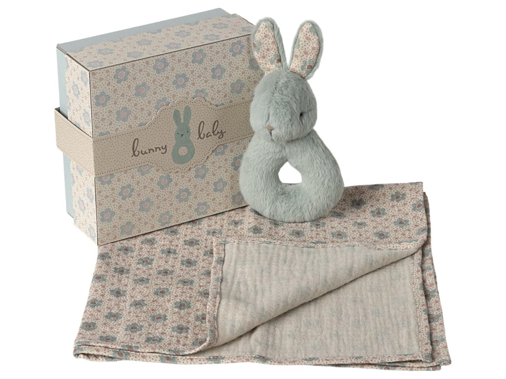 Maileg Dárkový balíček pro miminko Zajíček Mint Maileg Rabbit Rattle Set - Mint