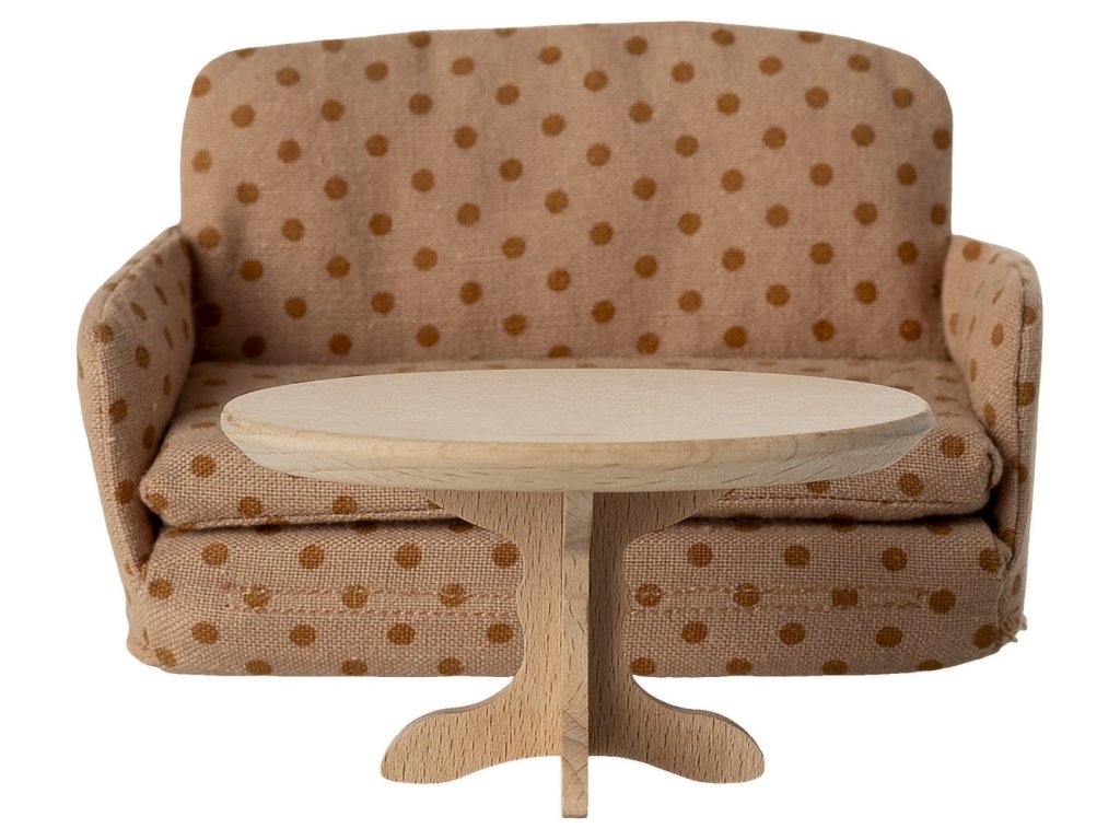 Maileg Dřevěný konferenční stolek oválný Maileg Oval Coffee Table, Mouse - Nature