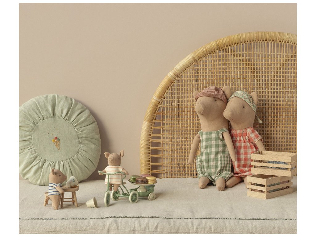 Maileg hračky jsou známé tím, že každý kus je originál. Proto je lze sbírat a uchovávat, sdílet s přáteli a rodinou po generace. Jsou vyrobeny z bavlny, případně v kombinaci bavlna / len a v případě potřeby se dají jednoduše vyprat.