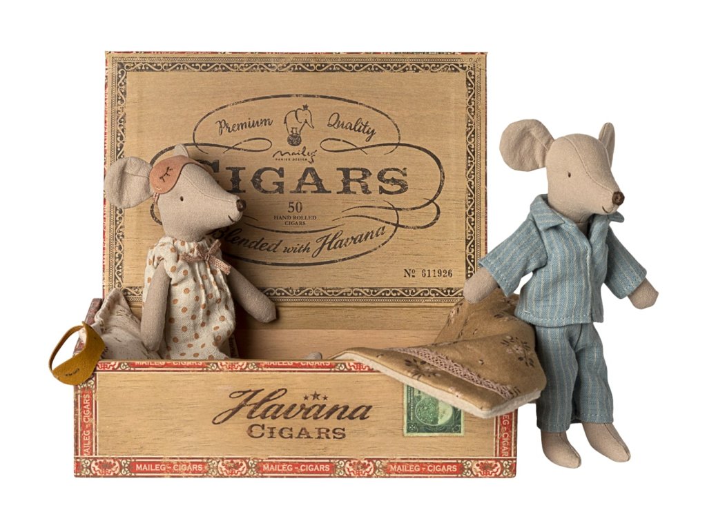 Maileg Máma a táta v krabičce od doutníků 2025 Maileg Mum and dad mice in cigarbox