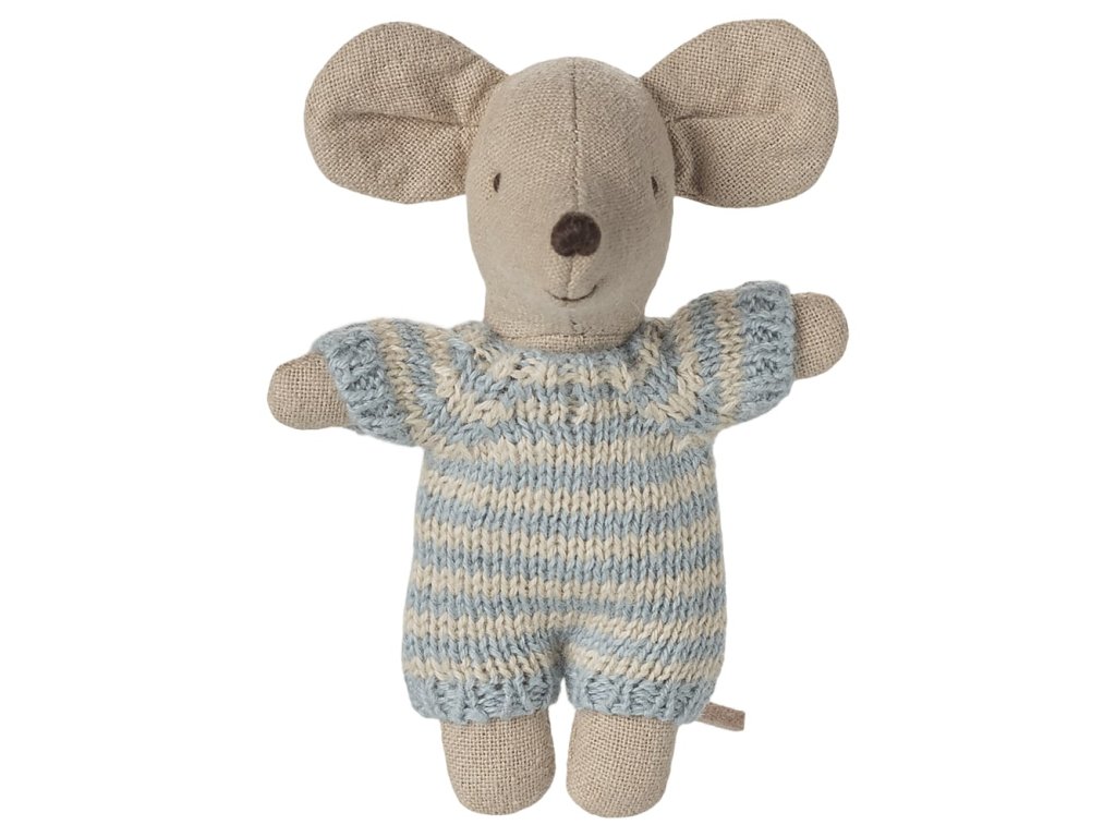 Maileg Myší miminko v bavlněném košíčku Blue Maileg Baby Mouse in Carry Cot - Blue