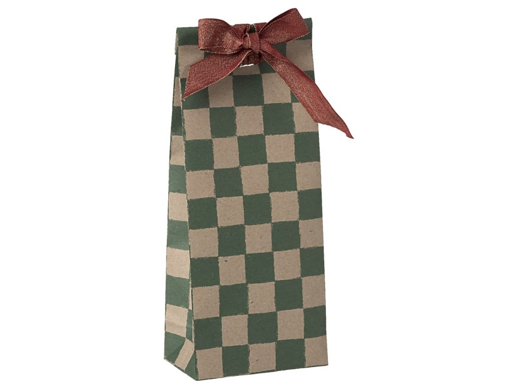 Maileg Papírový sáček Checker Green 24x10cm Maileg Gift Bag, Mini - Checker - Green