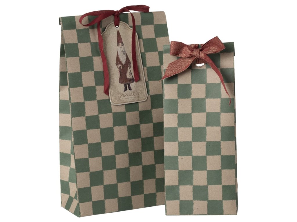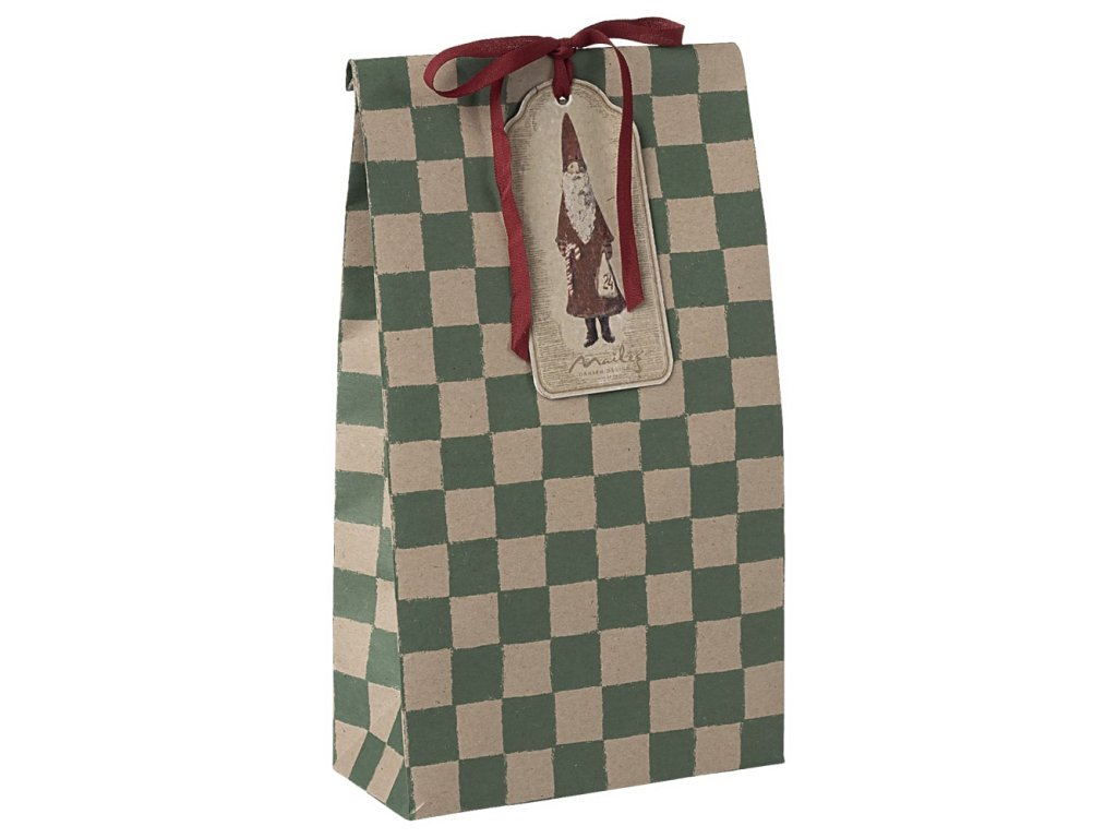 Maileg Papírový sáček Checker Green 30x16cm Gift Bag, Medium - Checker - Green