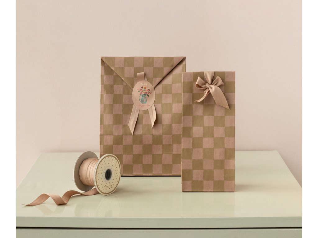 Maileg Papírový sáček Checker Rose/Ocher - malý Maileg Gift Bag, Medium