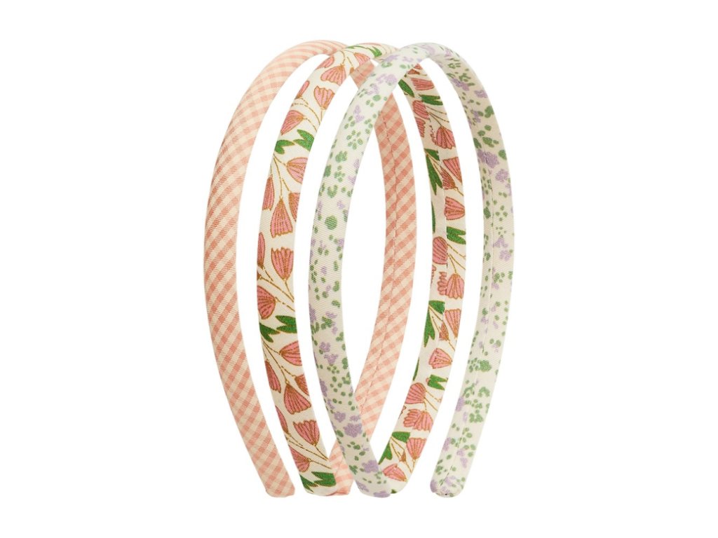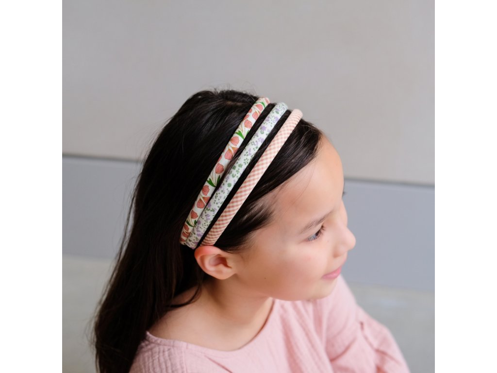 Tři jednoduché čelenky do vlásků v jemné paletě. Jedna kostičkovaná a dvě s květinovým vzorem. 3 ks v balení.