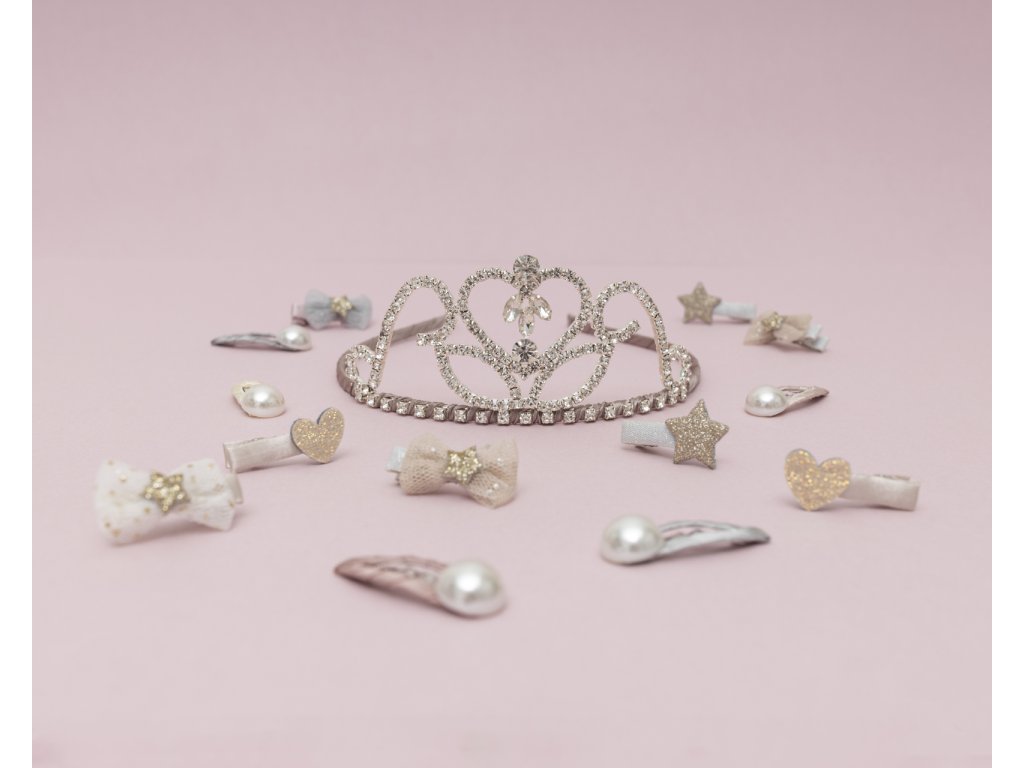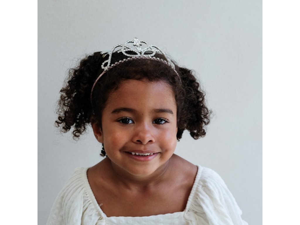 Třpytivá a honosná korunka pro malé princezničky, díky saténové stužce, kterou je omotaná spodní část, i nesmírně šetrná k jemným vláskům. Ta správná třešnička na dortu pro všechny spanilé princezny.