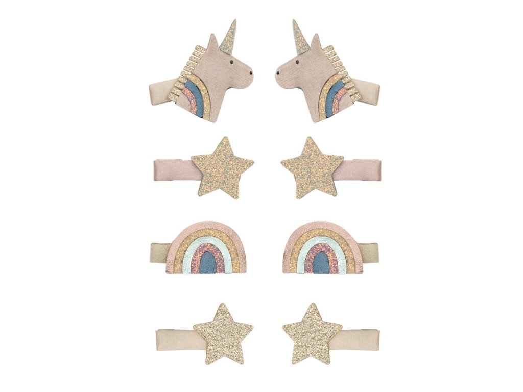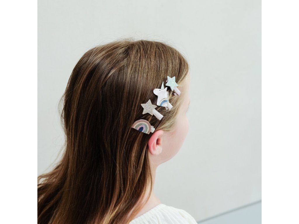 Sponečky do vlásků s jednorožci, duhami a hvězdičkami. Nepostradatelný doplněk všech malých princezen, víl a kouzelných holčiček. 8 ks v balení.