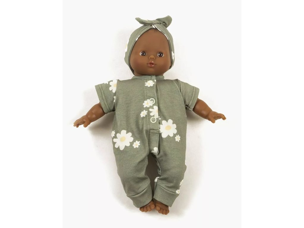 Obleček sedí na panenku Minikane s měkkým tělíčkem z kolekce "Babies." Větším panenkám by byl krátký, široký a prostě celkově nevhodný.