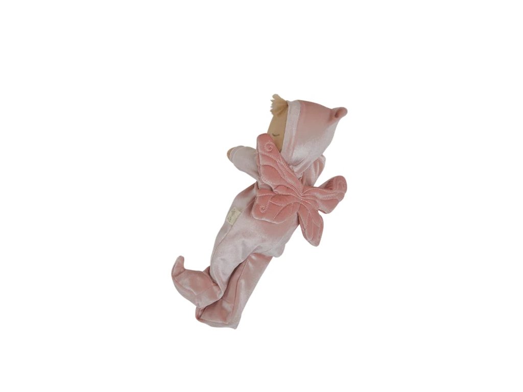 Měkká a ospinkaná panenka v sametovém pyžamku s měkkými křídly, protože ty přece víly mají. Neobsahují žádné opravdu tvrdé ani malé části a jsou tak vhodné pro děti od narození, do kočárků i do postýlek a to bez obav z upadlých knoflíků nebo odloupnutých očiček. Veškeré detaily jsou vyšívané a bezpečné.